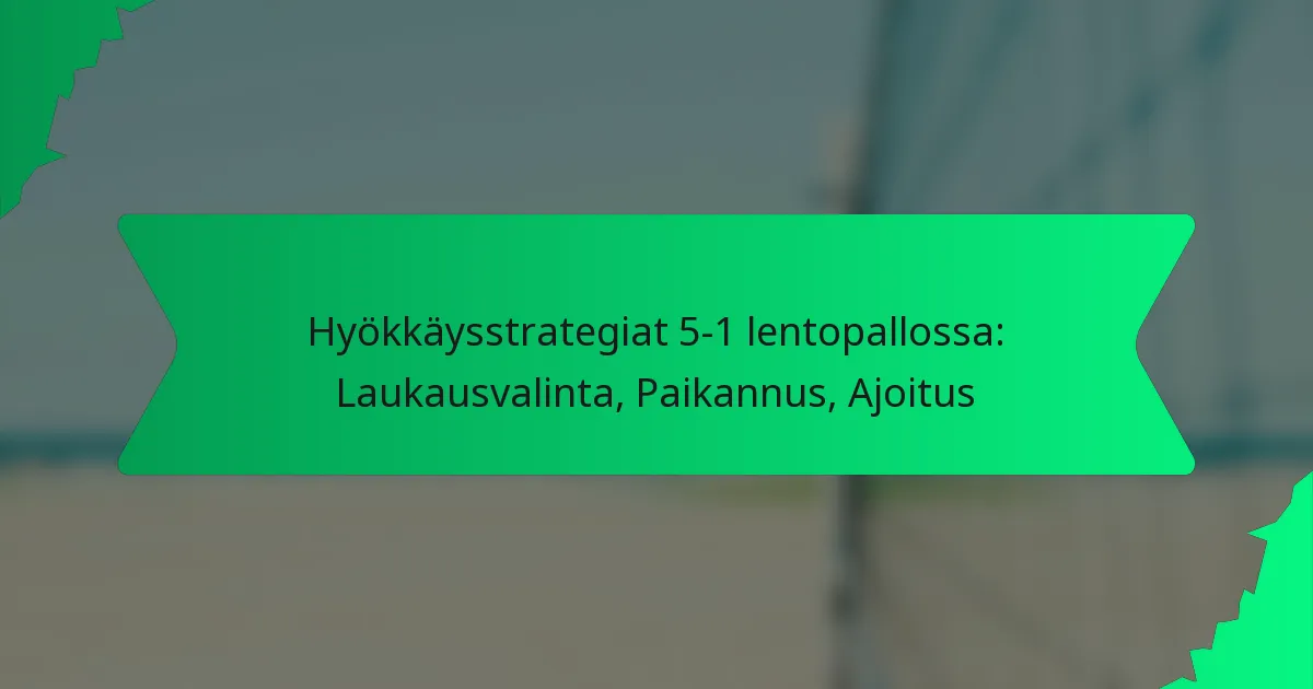 Tehokkaat sijoitusstrategiat 5-1 lentopallossa keskittyvät laukauksien ohjaamiseen puolustuksen aukkojen hyödyntämiseksi ja maalintekopaikkojen maksimoimiseksi. Ymmärtämällä laukausvalinnan, ajoituksen ja kenttäalueet pelaajat voivat parantaa hyökkäysvaikuttavuuttaan ja ohittaa vastustajat.