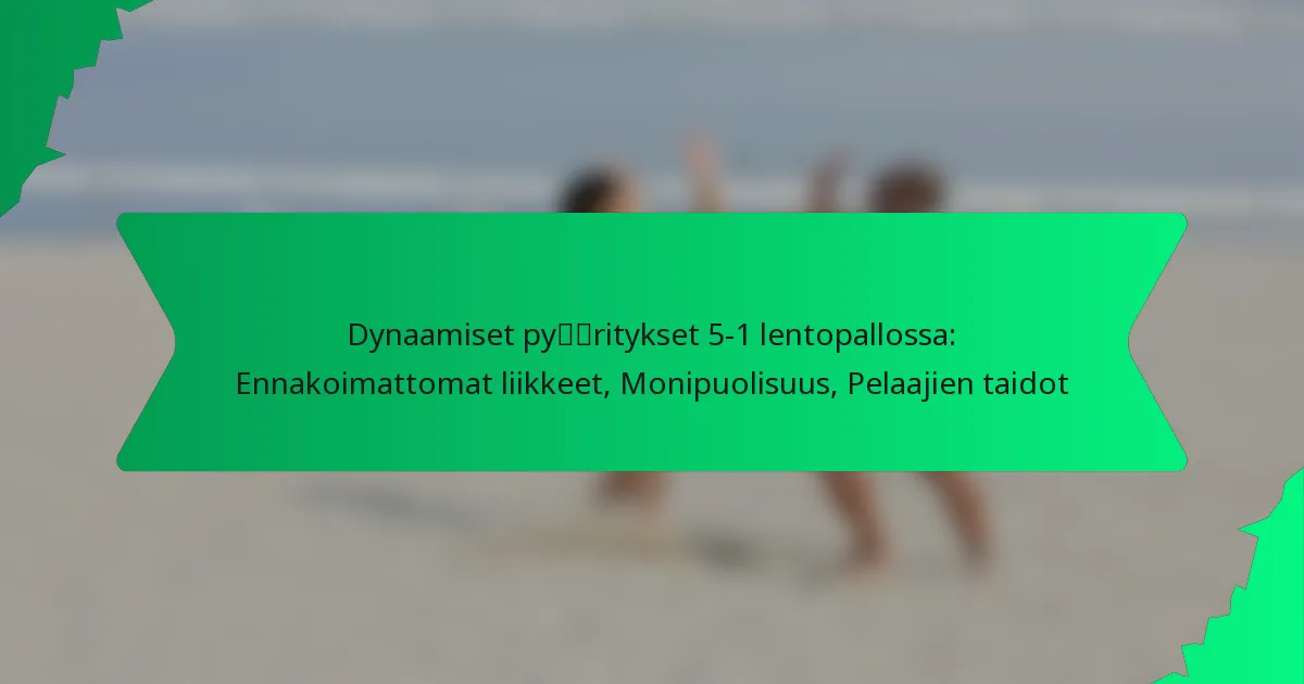 Tehokkaat valmennusstrategiat dynaamisille kiertojärjestelmille 5-1 lentopallosysteemissä keskittyvät pelaajien sopeutumiskyvyn ja tiimityön parantamiseen. Valmentajien tulisi korostaa monipuolisuutta pelaajien rooleissa ja kehittää harjoituksia, jotka edistävät nopeaa päätöksentekoa ja joustavaa liikettä kentällä.