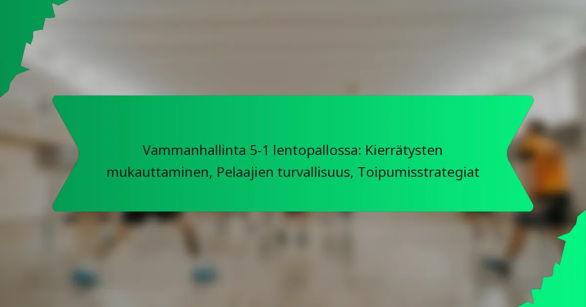 Vammojen hallinta 5-1 lentopallossa on ratkaisevan tärkeää pelaajien turvallisuuden ja suorituskyvyn ylläpitämiseksi. Mukauttamalla kiertoja ja toteuttamalla tehokkaita turvallisuusprotokollia joukkueet voivat minimoida vammojen riskin samalla kun varmistavat, että pelaajat pysyvät parhaimmillaan. Lisäksi keskittyminen palautumisstrategioihin, mukaan lukien kuntoutus ja ravitsemus, on olennaista vamman jälkeen turvallisen paluun mahdollistamiseksi.