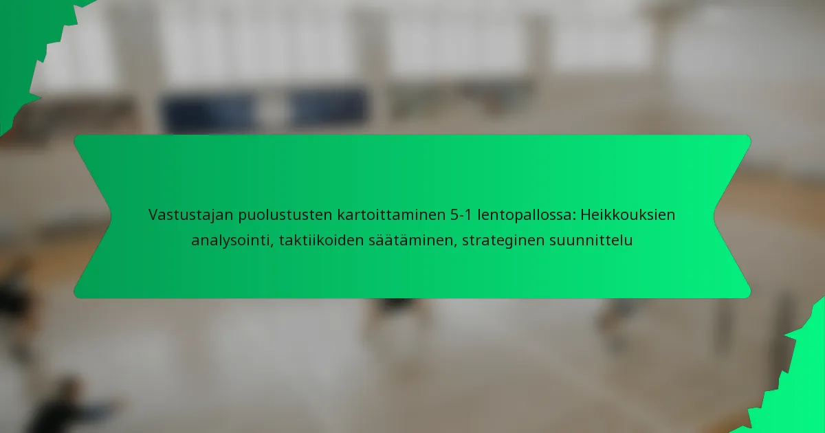 Vastustajien puolustusten kartoittaminen 5-1 lentopallossa on ratkaisevan tärkeää heikkouksien tunnistamiseksi ja joukkueen suorituskyvyn parantamiseksi. Analysoimalla pelaajien sijoittumista, viestintää ja puolustusstrategioita joukkueet voivat paikantaa haavoittuvuuksia, joita hyödyntää. Tämä strateginen suunnittelu mahdollistaa taktiset säädöt, jotka voivat merkittävästi vaikuttaa ottelun lopputulokseen.